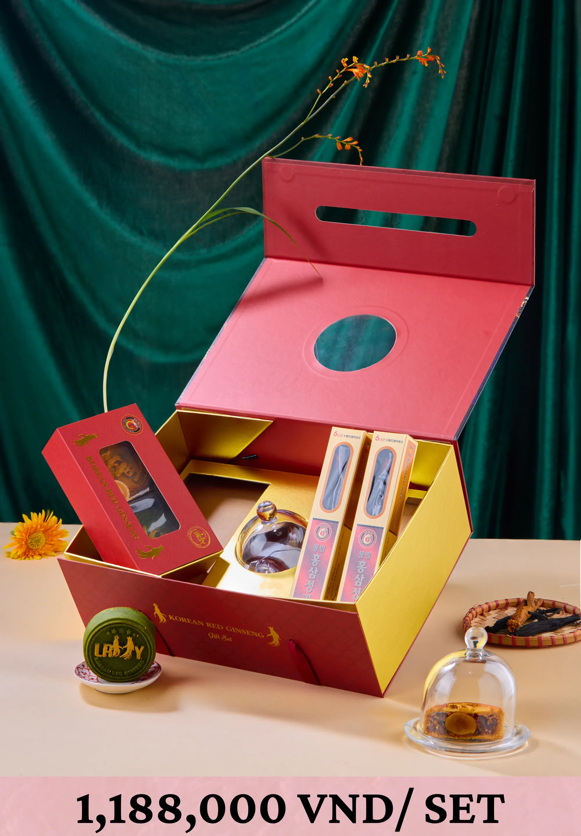 Nếu Tâm Giao là biểu tượng của sự gắn kết thân tình, thì Nguyệt Sâm chính là lời chúc sức khỏe và thịnh vượng. Thành phần set quà gồm: